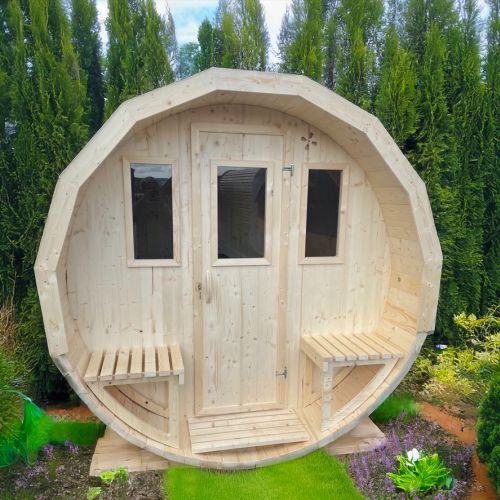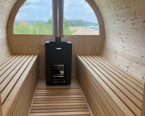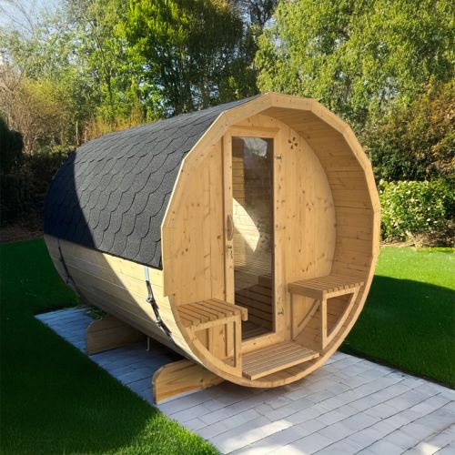 - Fasssauna 2,5m mit abschließbarer Glastür
