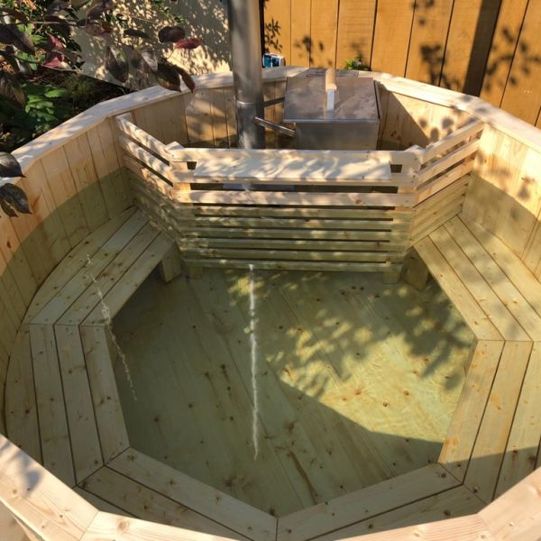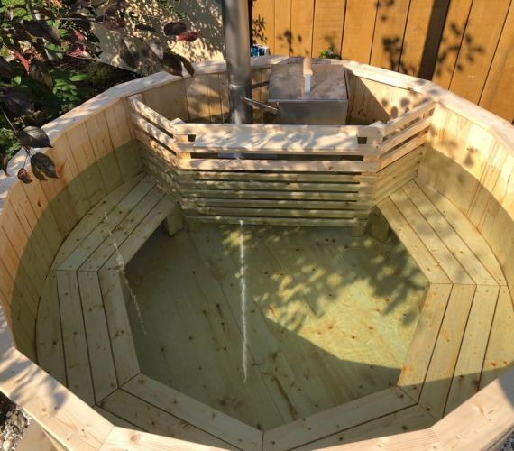 Unser Badezuber ist fix und fertig für Sie vorbereitet – hochwertig verarbeitet und direkt bereit für entspannte Stunden in Ihrem Garten.