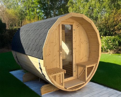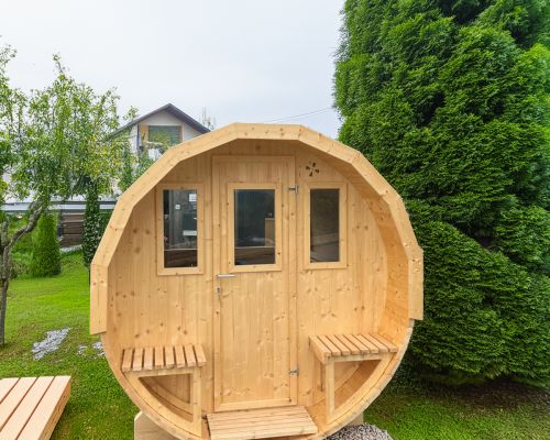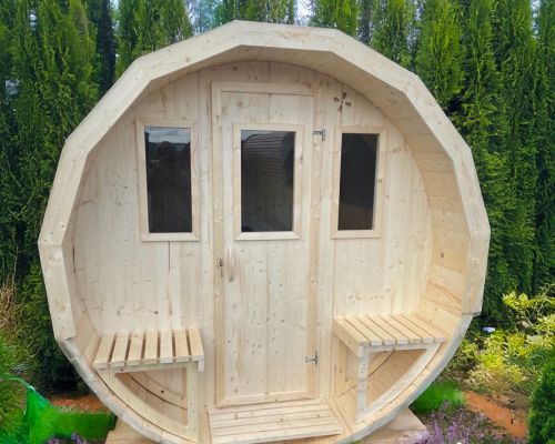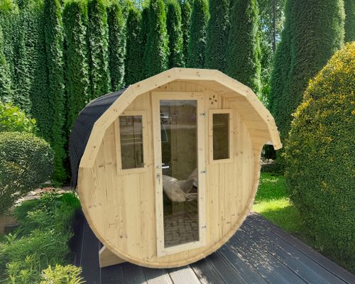 Hergestellt aus hochwertiger nordischer Fichte, überzeugt die Fasssauna durch ihre Langlebigkeit und natürliche Optik, die sich harmonisch in jede Umgebung einfügt. Genießen Sie Wellness und Entspannung in Ihrem eigenen Zuhause!