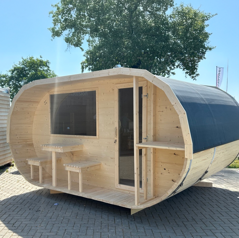 Unsere Ultra Deluxe Fasssauna kombiniert luxuriöses Design mit effizienter Wärmeverteilung. Die großzügige runde Form bietet Platz für bis zu 7 Personen und sorgt für ein unvergleichliches Saunaerlebnis – perfekt für Ihre Wohlfühloase im Garten.