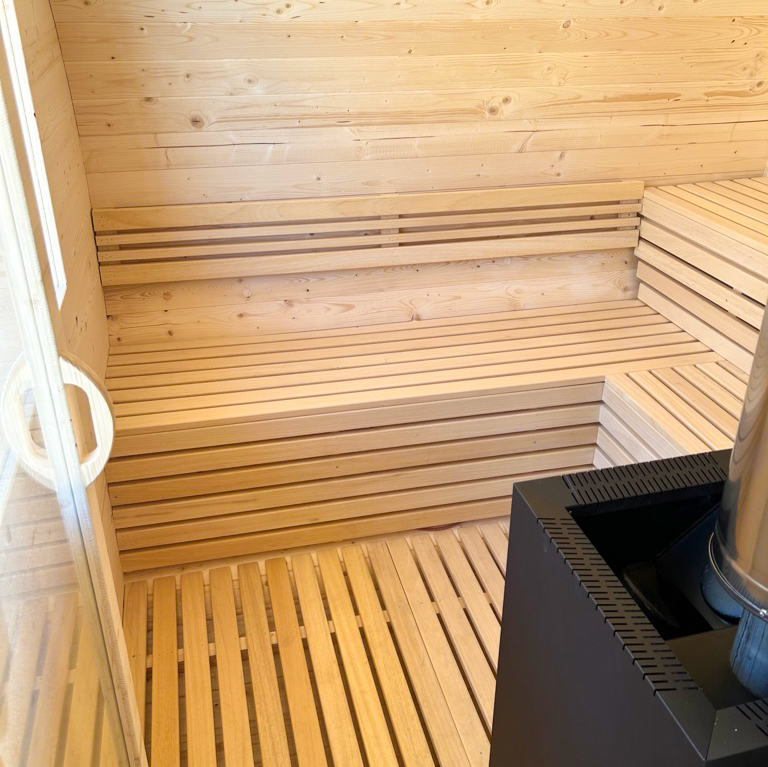 • Liegeflächen im Saunaraum in 2 Ebenen
